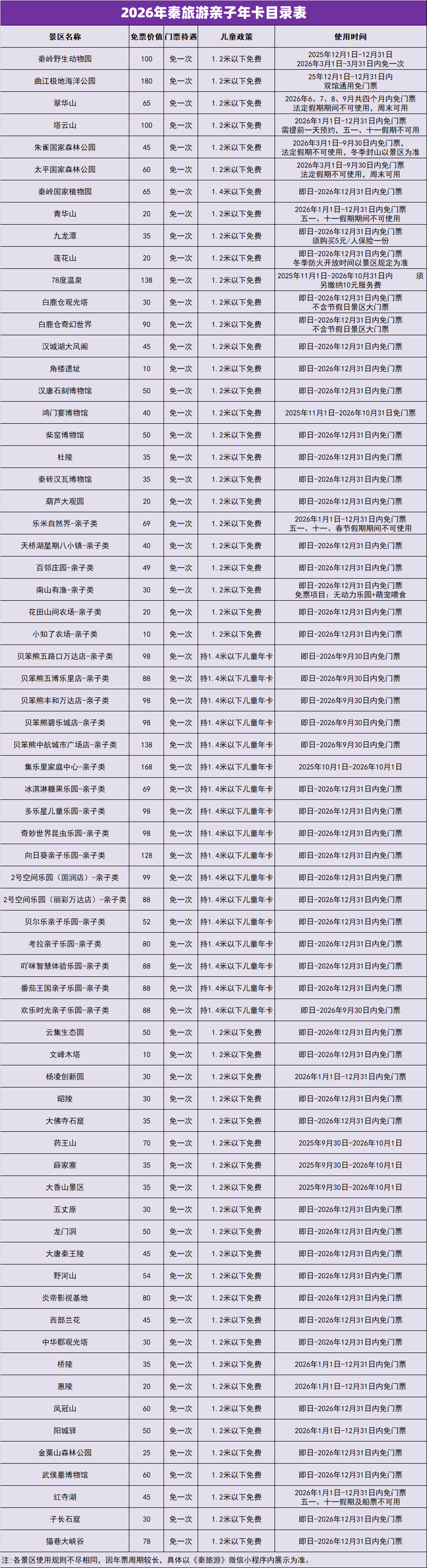 预订说明:① 2026秦之惠陕西旅游亲子年卡; 使用方法:凭电子编码在“秦之惠文旅”公众号年卡激活按流程绑定使用人信息! 年卡激活后不可退,未激活7日内可退。