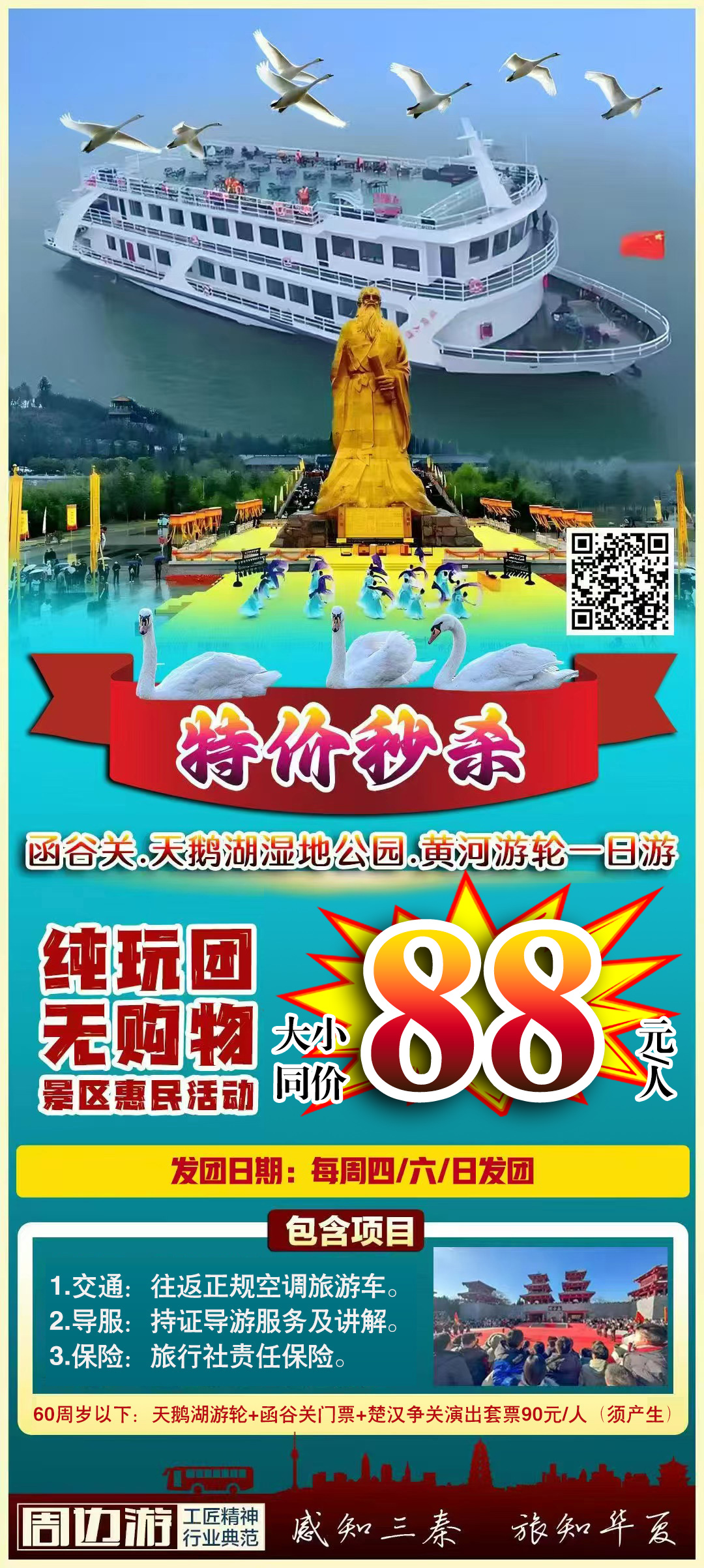 函谷关.天鹅湖湿地公园.黄河游轮一日游