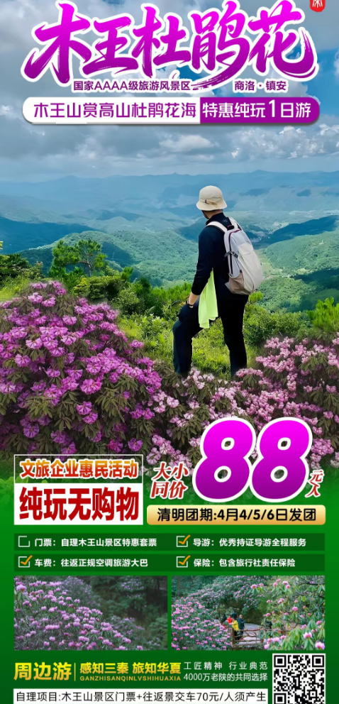 木王山赏高山杜鹃花海一日游(4月4/5/6日发团) 提前一天预定 (不可退)