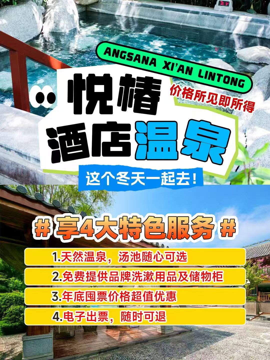 预订说明:① 预订限制: 请至少在出游当天20:00前预订;散客无需提前预约,超过20人以上的团队需至少提前1小时预订。 开放时间:日温泉营业时间为11:00-23:00(22:00停止入场,23:00所有客人需全部离场),温泉区域及Cabana不提供留宿服务。 兑票时间: 11:00-22:00。 费用包含: 悦椿温泉门票(免费提供洗护用品,储物柜)。 费用不包含: 其他个人二次消费。 入园方式: 凭预订短信中的验证码到温泉前台验证入园。 退改规则:订单未使用请在游玩当天的22点之前申请退款;一经验证,将不接受任何情况的退款。 特殊人群政策: 【免票政策】:儿童身高1.3米(不含)以下免费。 【优惠政策】:1.3米(含)-1.5米(不含)请购买儿童票。 *儿童身高1.5米(含)以上与成人同价。 *每位成人至多可以携带2位1.3米以下的小孩免费入场。
